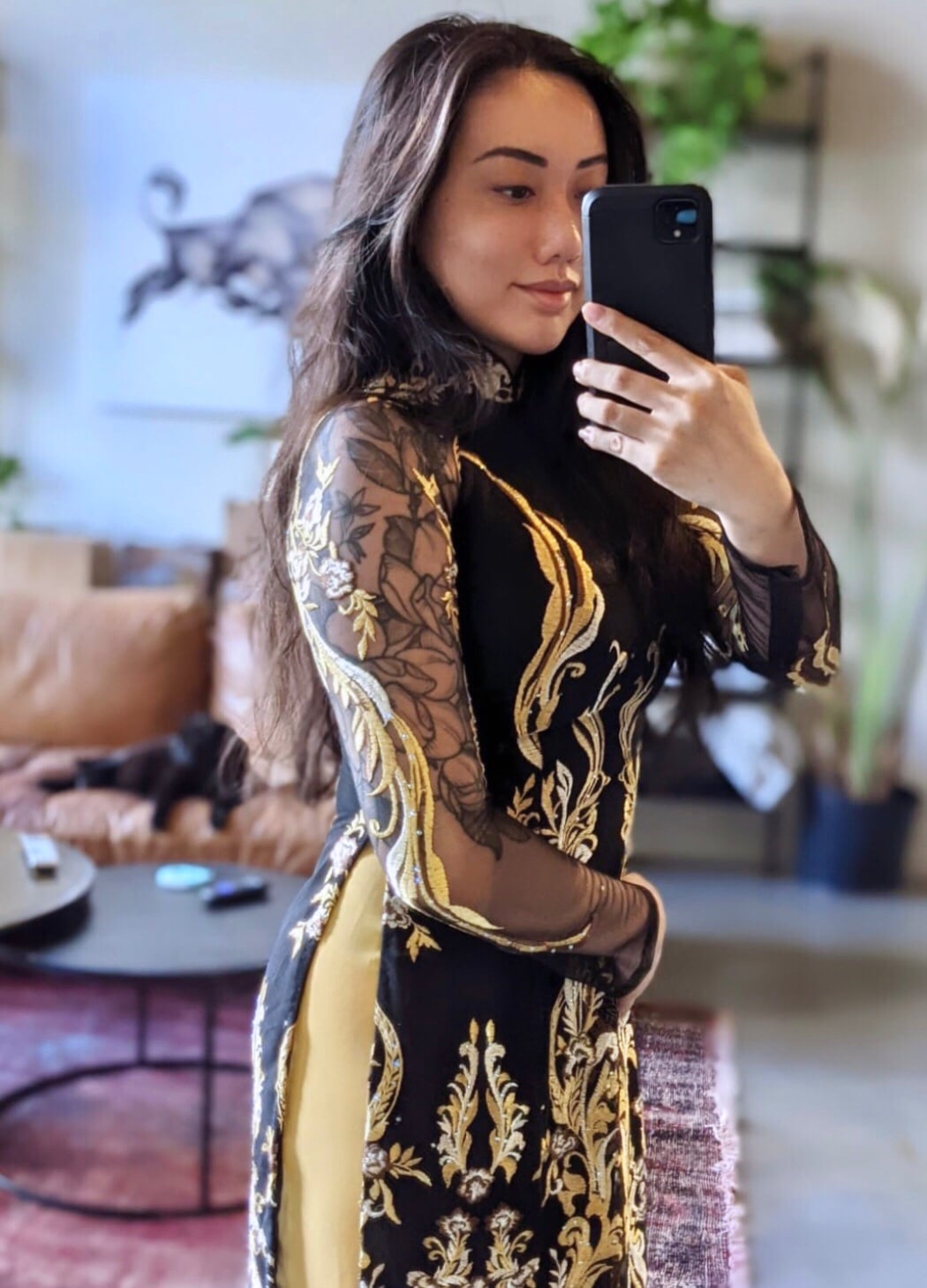 My ao dai fits so perfectly!! I was a bit worried, given that I have a shorter torso and am very busty and can't be measured in person. I feel so beautiful, it's incredibly flattering on me, and all my measurements were captured perfectly. It is flattering and falls right which is hard to do right when ordering online.