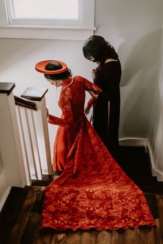 I unexpectedly received this earlier than I thought and I cannot wait to wear it! The headpiece was a bit big, but I think I didn't measurement my head probably for the fit? Perhaps specifications for future brides. But for the ao dai itself... It's clear Mark & Vy are very passionate about what they do, a beautiful dress I want to wear more than one occasion this month.